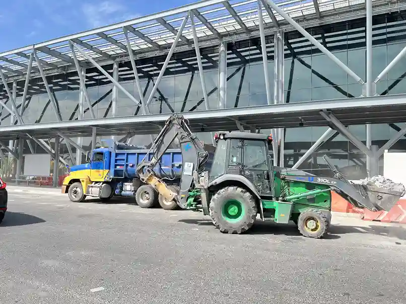 - Retroexcavadoras, excavadoras y camiones de volteo