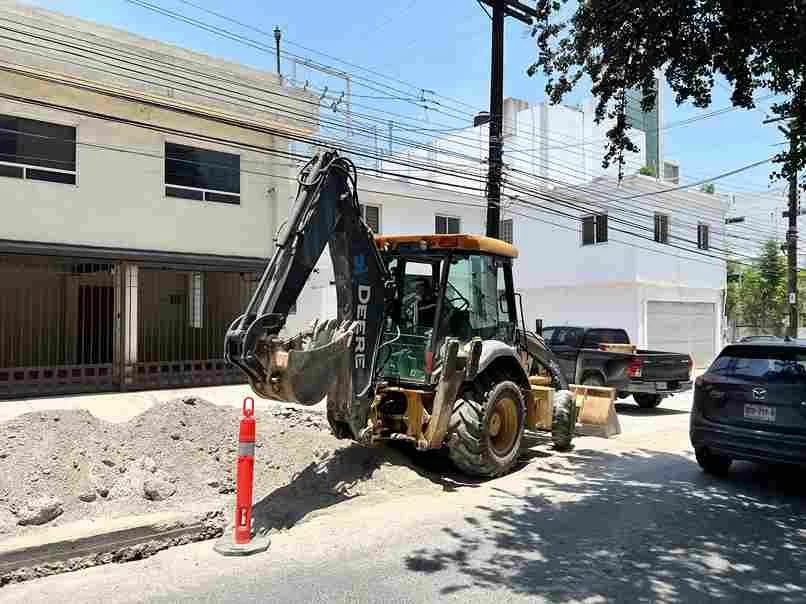 Corte y excavación de zanja para reparación de tubería en zona Obispado, Monterrey, Centro.